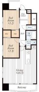 専有面積:60.60m2(壁芯)、バルコニー面積:4.85m2