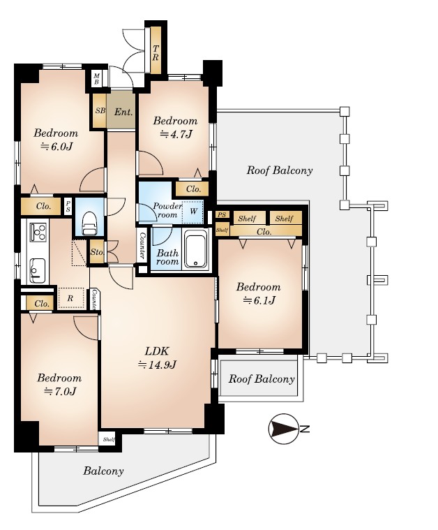・バルコニー 9.25㎡+大型ルーフバルコニー 25.48㎡付き